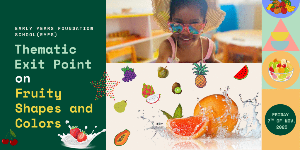 Our Early Years pupils will be concluding their Fruity Shapes & Colors theme with a joyful Exit Point experience. This event is designed to consolidate and celebrate the children’s learning about fruits in a fun and engaging way, encouraging sensory exploration, creativity, and collaboration among learners.